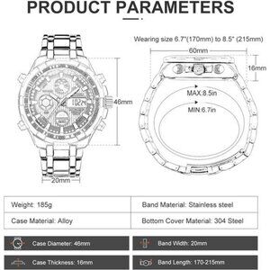 *[Huge SIZE] : Big Heavy Steel Watch,Diameter 45.95mm ,Dial thickness 16.34 mm,Net Weight:185g with 1 gift Box and 1 Small tool.