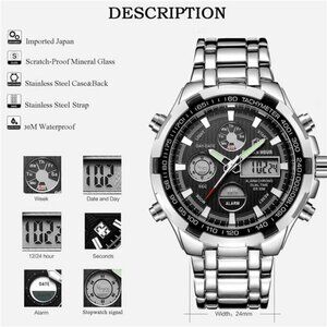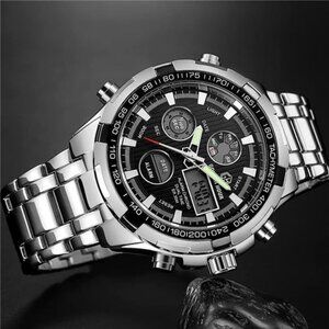 GOLDEN HOUR Luxury Stainless Steel Analog Digital Watches for Men Male Outdoor