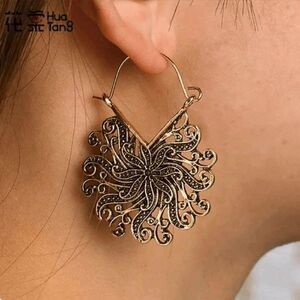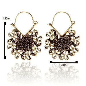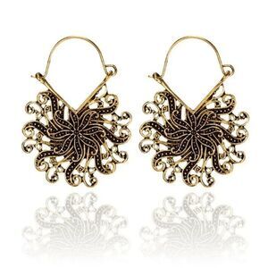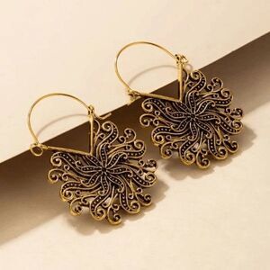 Chic Trendy Gold Floral Boho Dangle Earrings