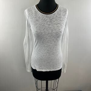 GOLDIE Lightweight White Long Sleeve Top Pima Cotton Round Neck Pullover Size XS
