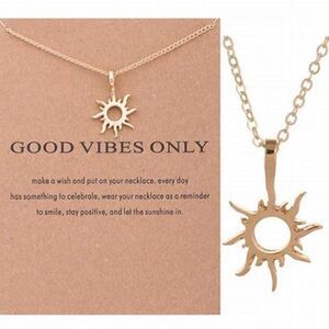 "Good Vibes Only" Gold-Plated Sun Pendant Necklace with Inspirational Card