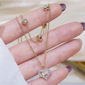 GOLD Plated Heart Diamond Heart Necklace