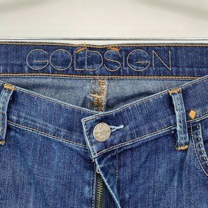 GOLDSIGN Guitar Super Flare Jeans Women's Size 31 Mid Rise Stretch Denim Blue