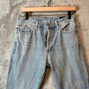 GOLDSIGN Low Slung Crop Jeans Marled Blue Light Wash Button Fly Size 26 Cotton