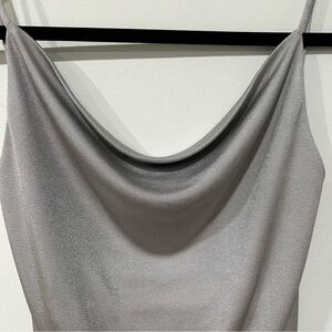 GOLDSIGN Metallic Milo Cowl Neck Cami Top SZ XSmall Silver Low Back Holiday Is New With Tags.