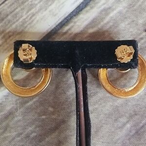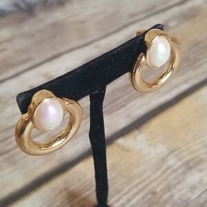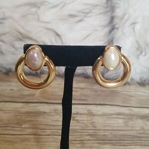 GOLDTONE HOOP AND FAUX PEARL EARRINGS