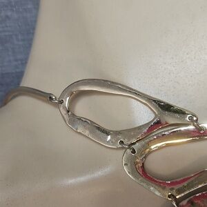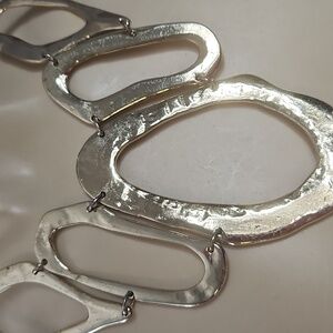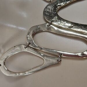 Goldtone Big Asymmetrical design in pre-owned condition. might have a few scratches on metal.