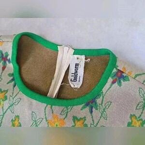 GOLDWORM Wool Knit Vintage Dress Metallic Green Floral Size S