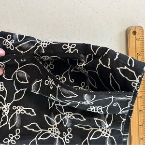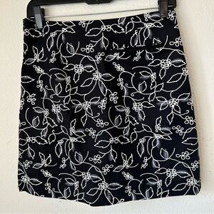Chic black skirt with white floral pattern. Perfect for any occasion.
