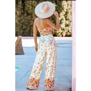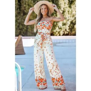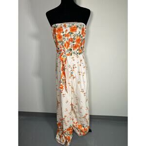 GOMORN 2 peace, Strapless Wide Leg Jumpsuit floral orange Sz XL 12 44 NWT