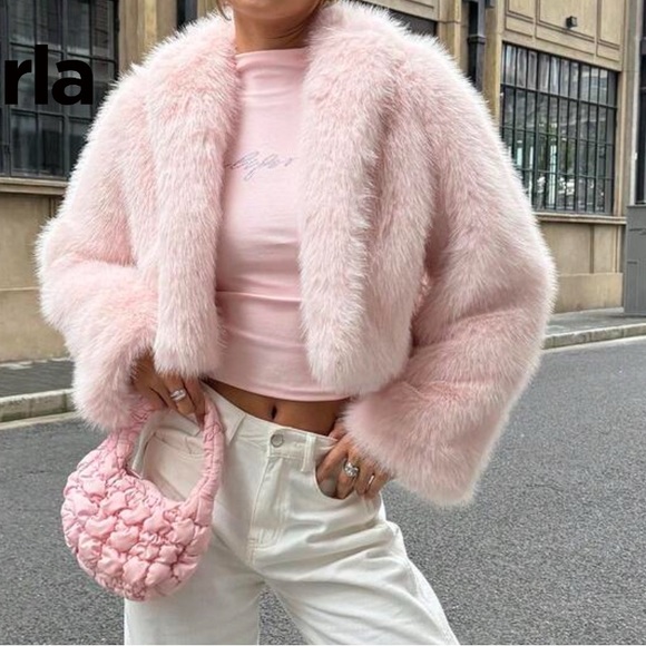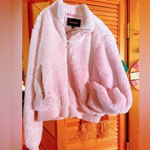 Chic and warm fleece jacket by Ambiance. Light pink color adds elegance.