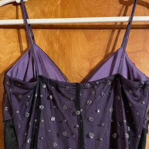 Chic purple dress by Taboo. Features black trim for added style. No size tag but I believe is a petite size. Small great for the holidays.