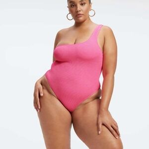 GOOD AMERICAN Always Fits Shoulder One Piece Swimsuit Bright Pink. Various sizes. New with tags and still comes in its own original packaging.