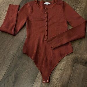 GOOD AMERICAN BODY BODYSUIT SIZE 4 BRICK ORANGE RIBBED HENLEY ONE PIECE NWOT