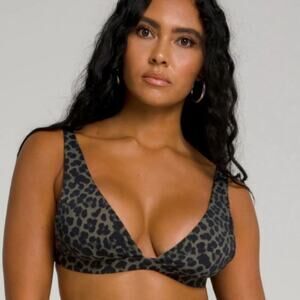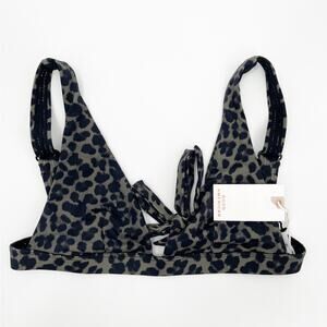 GOOD AMERICAN Bikini Top Sexy Boost Wide Band Animal Print Green Size Small NWT