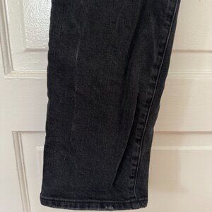 These are a pair of black, distressed Good American jeans. I'd say they're a skinny jean for sure, but I liked that the ankle isn't insanely tapered like some skinnies are, so it has a nice shape with shoes / heels / boots.