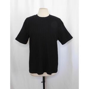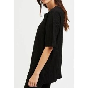 GOOD AMERICAN Black Wide Ribbed Boyfriend Tee Short Sleeve Top Shirt Size 1 2