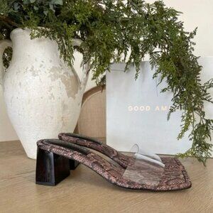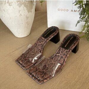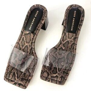 GOOD AMERICAN Block Heel Slide Sandal In Desert Snake NEW NIB 10