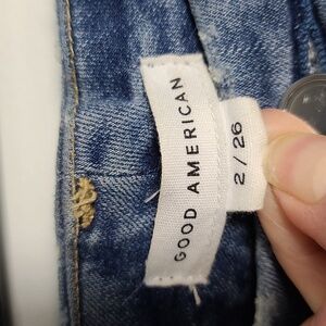 Experience the perfect blend of style and comfort with these Good American high rise jeans. Crafted in a classic blue hue, they offer a flattering fit that accentuates your silhouette. Ideal for any occasion, these jeans are a versatile addition to your wardrobe.