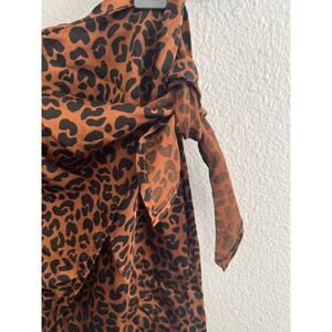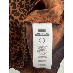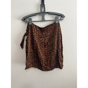 GOOD AMERICAN Brown Black Leopard Print High Waist Sarong Mini Skirt Size 1