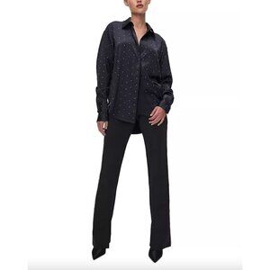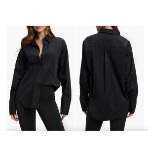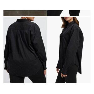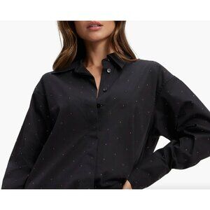 GOOD AMERICAN Crystal Studded Oversize Stretch Poplin Shirt Black00 Womens Size