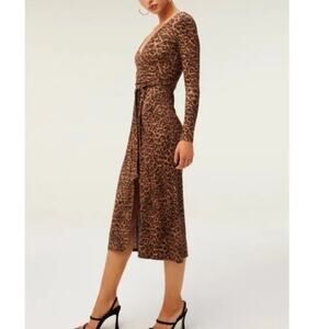GOOD AMERICAN Daynight Long Sleeve Midi Wrap Dress in Caramel Leopard