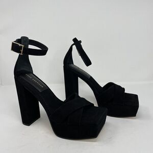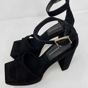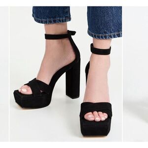 GOOD AMERICAN Description Platform Sandal Womens 9 Black Suede Heels NEW Ankle