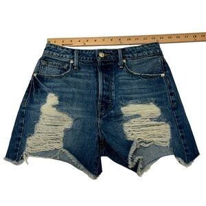 GOOD AMERICAN Distressed Denim Jean Shorts 00/24 NWOT