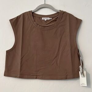 GOOD AMERICAN Essential Cropped Shoulder T-Shirt NWT size 3 = Large color: Putty