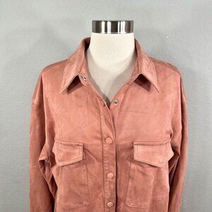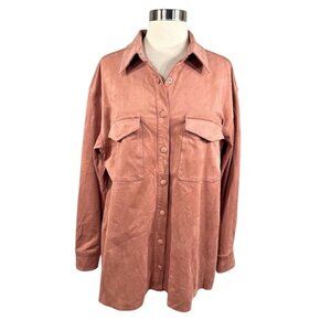 GOOD AMERICAN Faux Suede Shacket in Dusty Rose