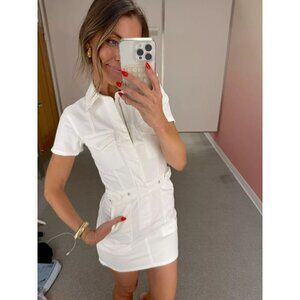 GOOD AMERICAN Fit for Success Denim Utility Dress Denim in Wash White Size Small