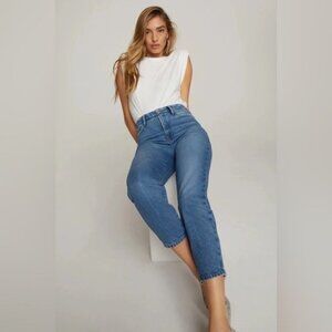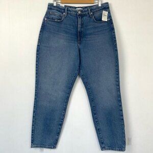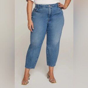 GOOD AMERICAN GOOD MOM HIGH RISE JEANS FULL LEG TAPERED LEG BLUE 586 SIZE 12 NEW