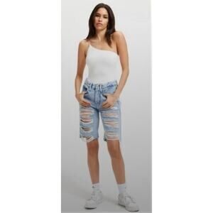 GOOD AMERICAN Good 90s Bermuda Denim Jean Shorts In Indigo Size 4/27 NWT*
