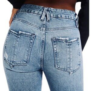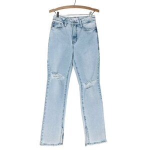 GOOD AMERICAN Good Boy Ripped Straight Leg Wide Release Hem Jeans - Size 0/25