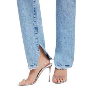 GOOD AMERICAN Good Boy Ripped Straight Leg Wide Release Hem Jeans