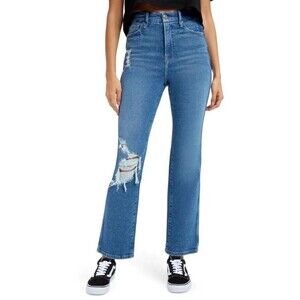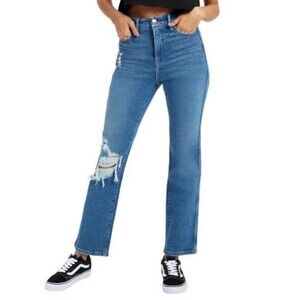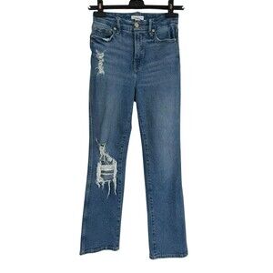 GOOD AMERICAN Good Curve High Waist Distressed Straight Stretch Jeans SZ 00/24
