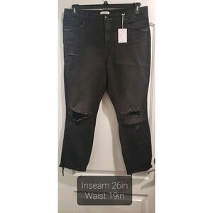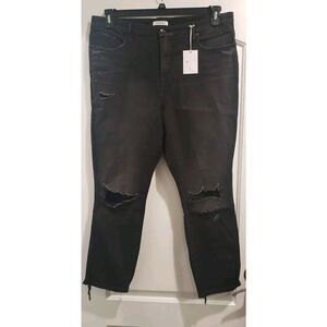 GOOD AMERICAN Good Curve Skinny Cropped Jeans Black, Back Chewed Hem Size 18 NWT