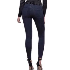 Nice high rise super stretchy skinny jeans by Good American. Dark blue wash (Blue375). Button and zipper fly. Pockets and belt loops. Good Legs style. Crop ankle length. Great condition! Womens size 0 (25).