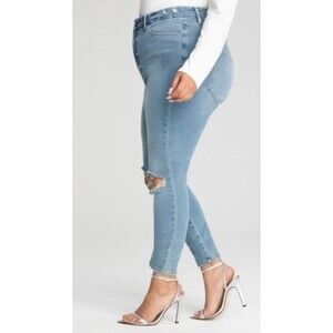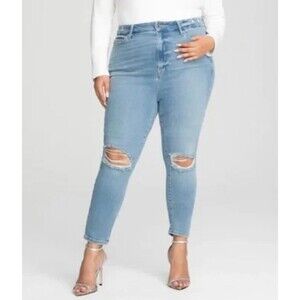 Good American's #1 best-selling skinny fit, Good Legs. A classic pair of blue jeans that are cropped cut. High stretch, sculpting and smoothing fabric with amazing recovery. Good American stretch jeans feature recovery fabric. This gives you more wears between washes and allows your jeans to preserve their original shape wear after wear. Five pocket style.
