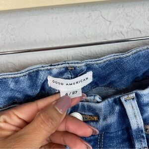 GOOD AMERICAN Good Legs Straight Distressed Pockets Jean in Indigo