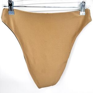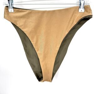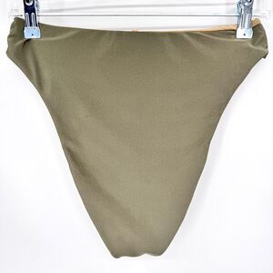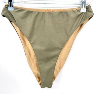GOOD AMERICAN Good Waist Sage Green Gold Reversible Cheeky Bikini Bottom Sz L 3