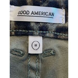 GOOD AMERICAN Green Leopard Cut Off Jean Shorts