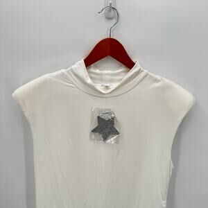 Ivory color. Perfect condition - there is one small spot of makeup from a try-on on the inside of the mock neck. Shown in the photo.