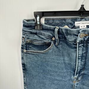 GOOD AMERICAN NWT Good Waist Crop Denim Jean in Blue799 // 14