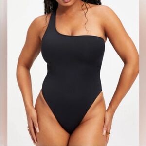 GOOD AMERICAN NWT Scuba One Shoulder High Cut Thigh One Piece Black Medium