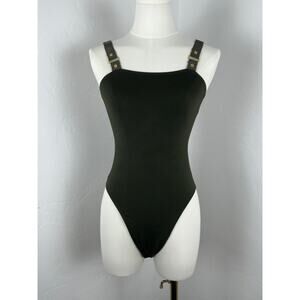 GOOD AMERICAN Olive Green Tank Body Suit with Gold Hardware (Size: 3)