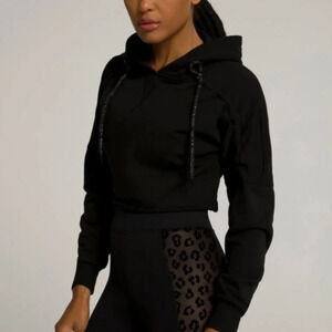 GOOD AMERICAN Ruched Crop Black Hoodie size 2/ medium
