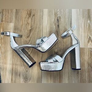 GOOD AMERICAN Silver Platform Heels Size 8.5