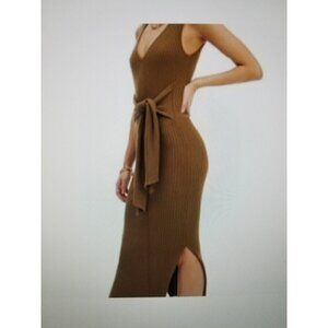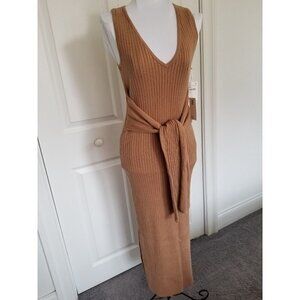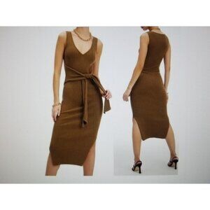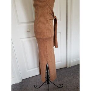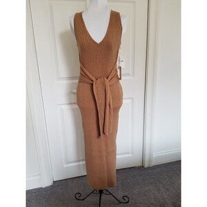 GOOD AMERICAN Sleeveless Rib Knit Tie Waist Midi Dress Taupe Tan Size 2 M