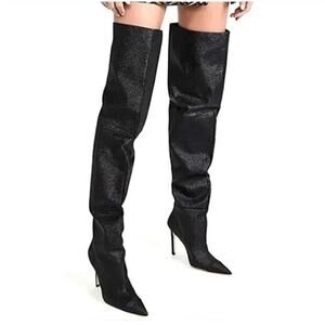 GOOD AMERICAN Slouchy Over The Knee Stiletto Boots Glitter Edgy Statement 6
